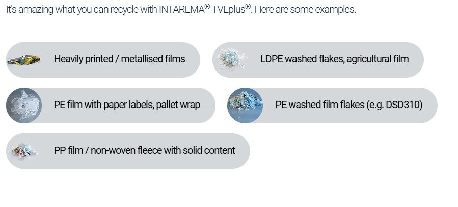 with double degassing: for flexible recycling of slightly printed production and industrial waste and technical plastics.